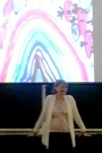 Now I had a chance to see and meet the pioneer of Point Zero Painting. She was giving a presentation at John F. Kennedy University’s Art & Consciousness Talks. Her introduction included what some people I admire have said about her: